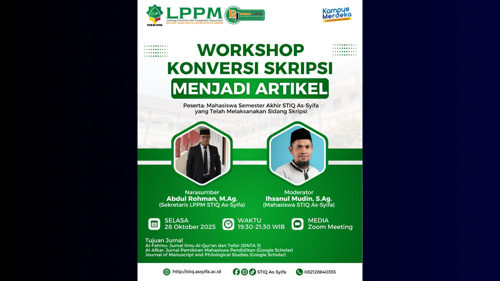 Subang, 15 Juli 2025 – Salah satu Staff LPPM STIQ As-Syifa, Apri Wardana Ritonga, M.Pd., mendapat kehormatan menjadi narasumber utama dalam kegiatan National Guest...